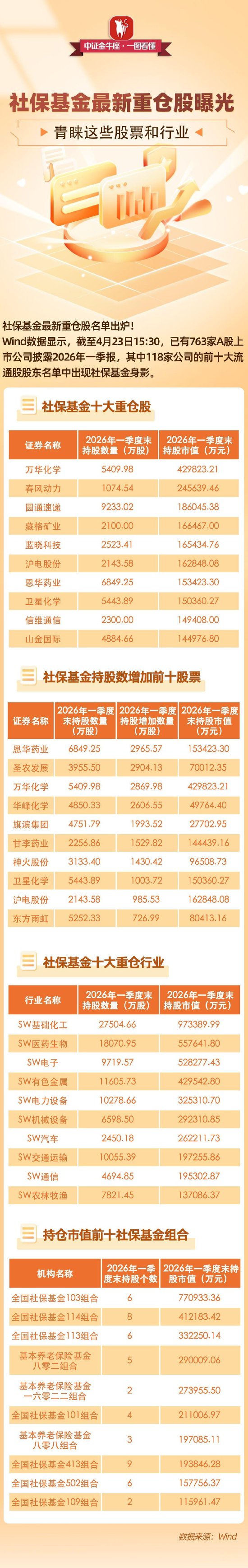 【一图看懂】社保基金最新重仓股曝光,青睐这些股票和行业